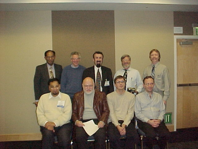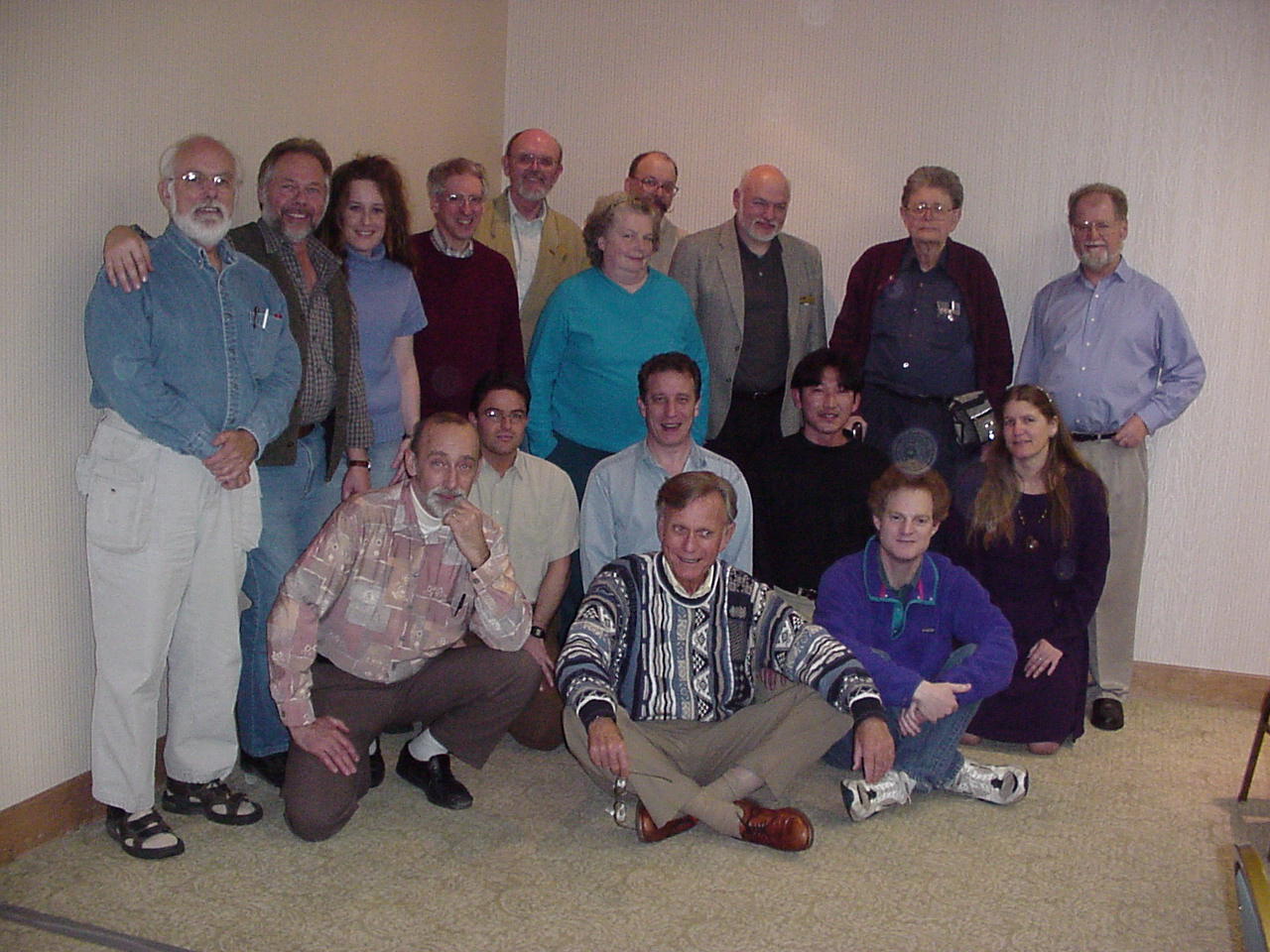During the optical SETI conference organized by Stuart Kingsley in January 2001, several Signatories met for dinner and a discussion sparked by mini-paper handouts brought by several participants. Photo #1, taken by Scot Stride, and Photo #2, taken by H. Paul Shuch, show the group.